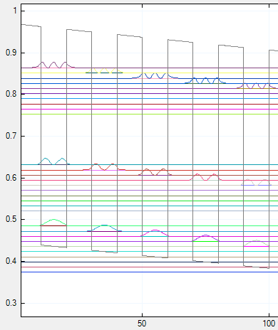 This feature hides any parts of the curves where the value does not change within 5 grid points (two to the left and right). Its purpose is for visualizing wave functions and probability densities on top of band edges. The constant part which represents the energy level will be hidden. This allows to focus on the changing parts as well as for the underlying band edge to be seen. The influence of this feature can be seen in Figure 1.1.23 and Figure 1.1.24.