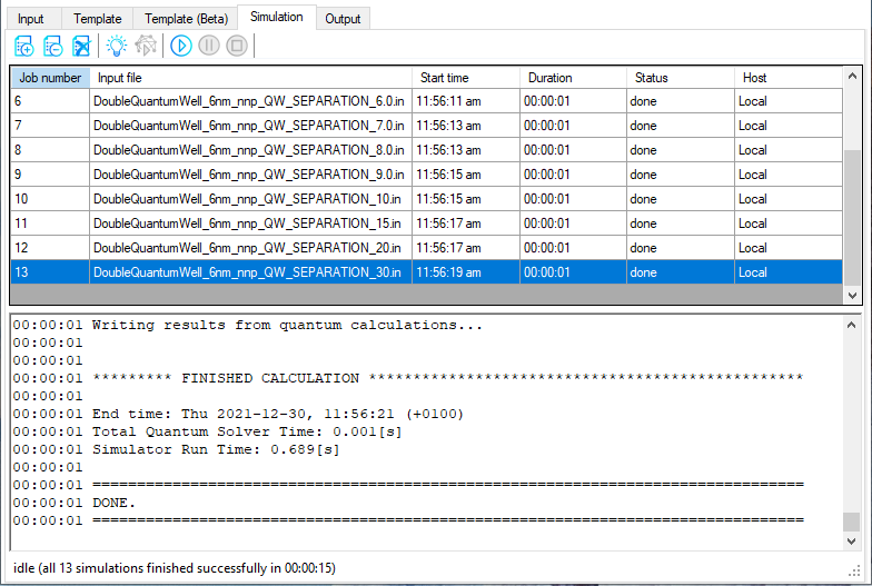 An example how the template can be used to sweep over a variable, e.g. the quantum well width, is shown in this Exciton Binding Energy in an Infinite Quantum Well.