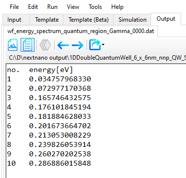 Figure 1.1.9 Result of post-processing. Electron energy eigenvalue in relation of quantum well separation.