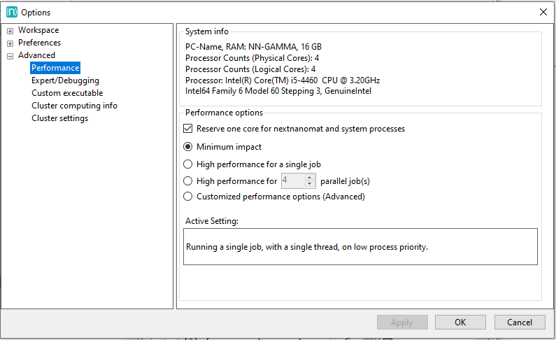 Figure 1.2.9 Settings for simulation performance.