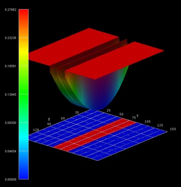 The following figure shows the conduction band edge profile of the two coupled quantum wires. The confinement is as follows: