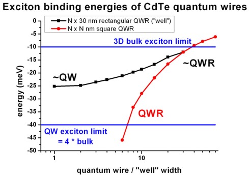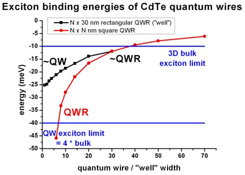 - infinitely thin quantum well (2D limit):                     Eex,qw = 4Eex                                   lambdaex,qw = lambdaex / 2